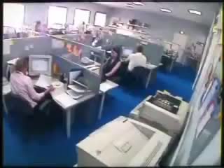 Angry man destroys printer
